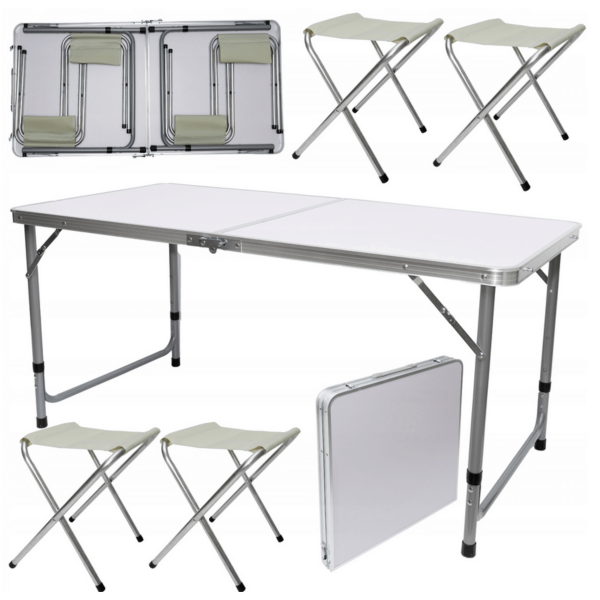 ZESTAW BIWAKOWY STÓŁ 120X60CM I 4 KRZESŁA, SKŁADANY